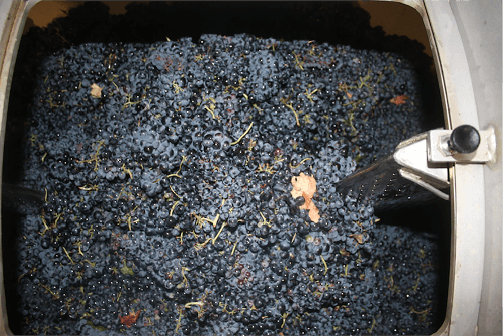 The berries are stripped from the stems in the destemmer then the grapes are crushed very g ently in order to reduce the risk of astringence, before filling the stainless steel tanks by gravity.
